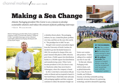Wes Carter, president of Atlantic Packaging as well as an avid surfer, has been on a mission to move consumer products away from single-use plastic packaging, which has been a huge contributor to ocean pollution.