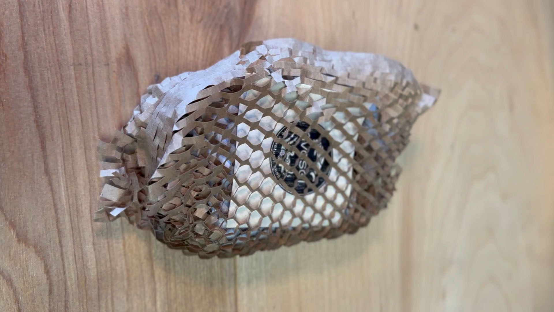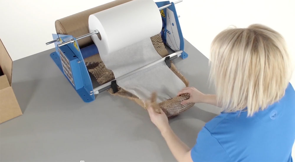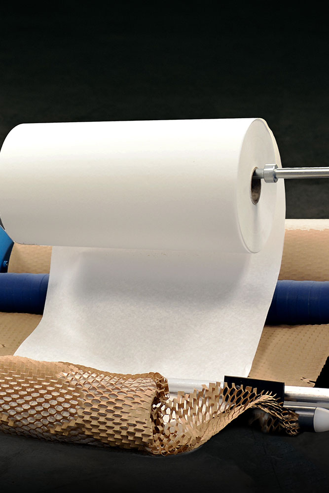 Geami WrapPak combines a patented die cut kraft paper with a tissue interleaf paper. The converter expands the die-cut paper into a 3D honeycomb structure, forming a unique wrapping material. By locking angled paper cells together, items can be wrapped securely without the need for adhesive tape or cutting. This solution offers product protection with improved productivity while using sustainable products for a positive unboxing experience.