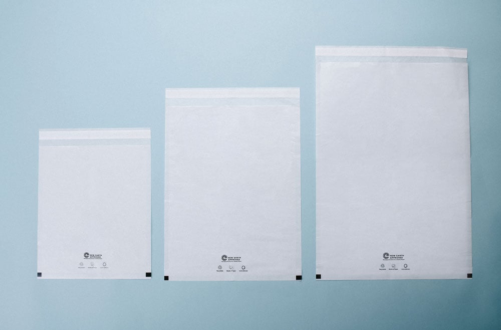 With Vela paper transport bags, you can safely eliminate single-use plastic poly bags to sort and ship your garments in sustainable and earth-friendly fashion. We offer these weather-resistant, durable, transparent, and curbside-recyclable FSC®-Certified (License number C154060) paper bags in four sizes so you can right size your packaging to eliminate waste and improve sustainability all around.